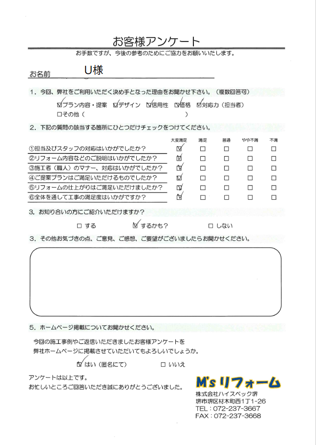 堺市西区浜寺諏訪森町中U様邸 リフォーム