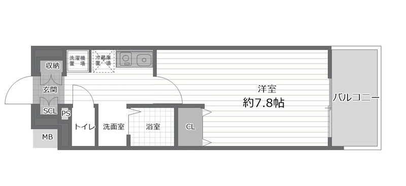 専有面積:(壁芯)24.94㎡ バルコニー:4.06㎡/南向き