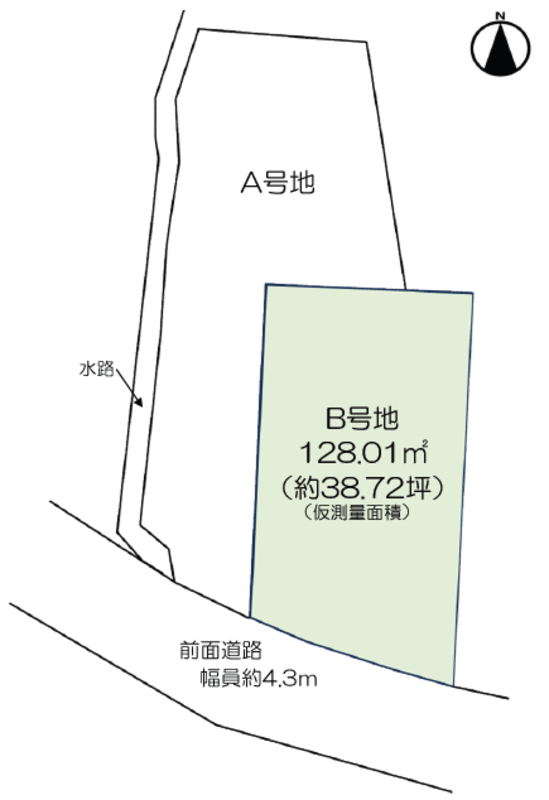 土地面積:実測128.01㎡(約38.72坪) ※予定