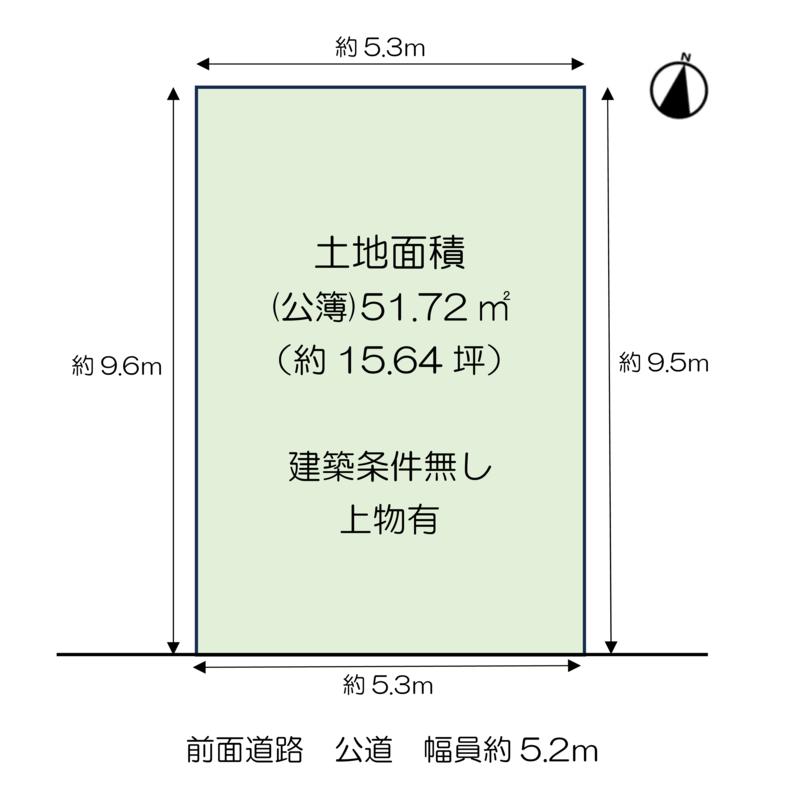 接道:南側 公道 幅員約5.2m 間口約5.3m