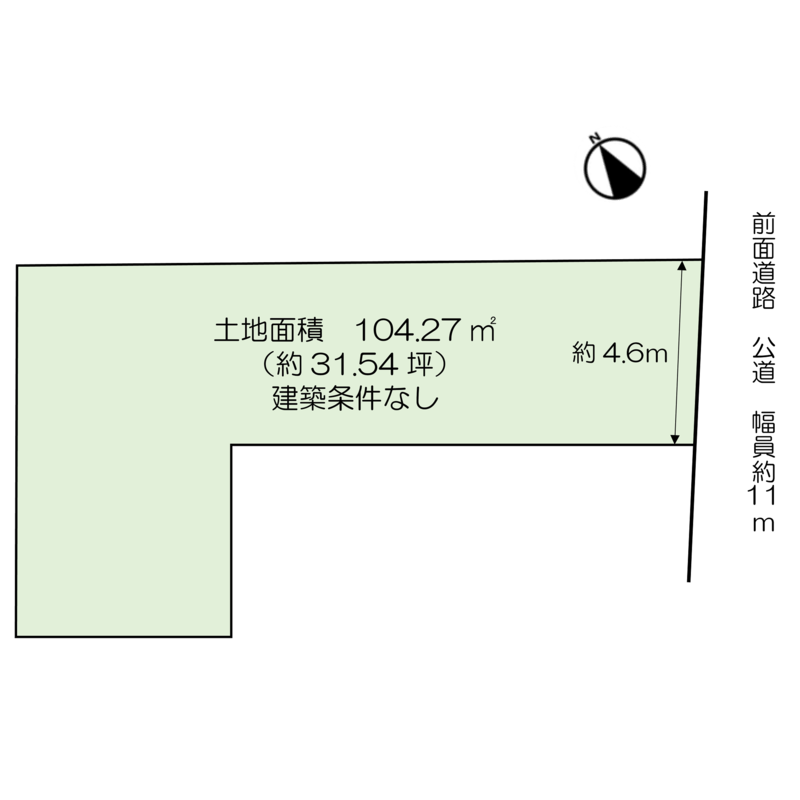接道:南東側 公道 幅員約11m 間口約4.6m