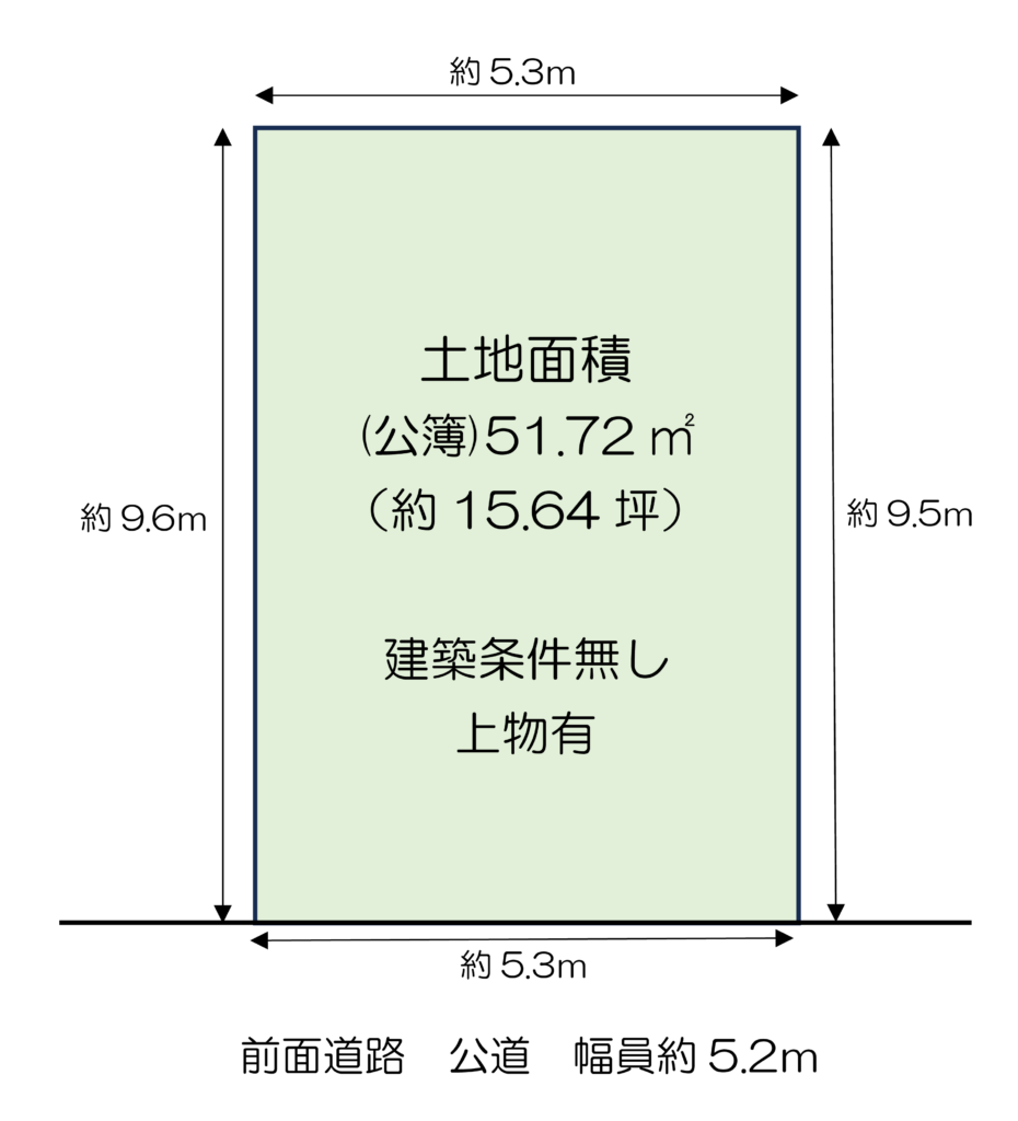 接道:南側 公道 幅員約5.2m 間口約5.3m