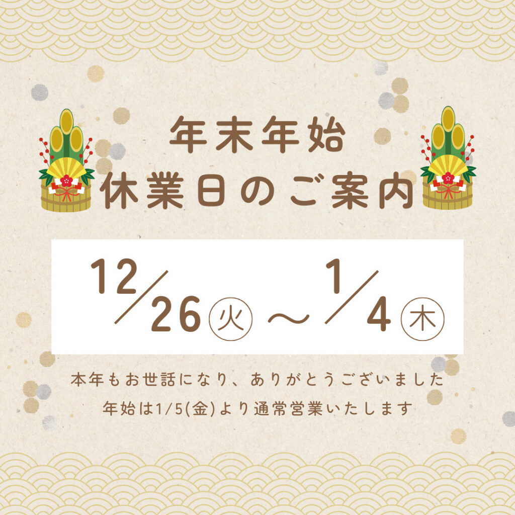 誠に勝手ながら、年末年始休業日を上記のとおりとさせていただきます。