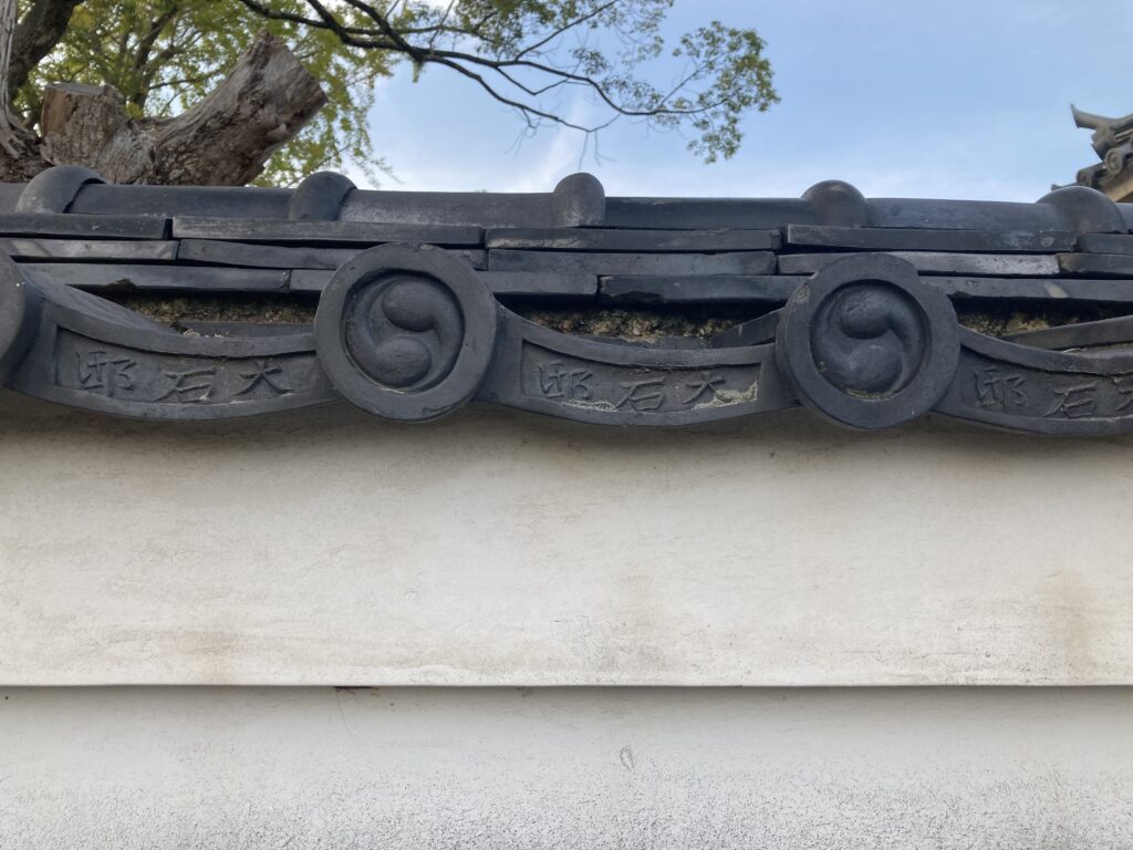 瓦には全て大石家の家紋「右二つ巴」が入っていました。