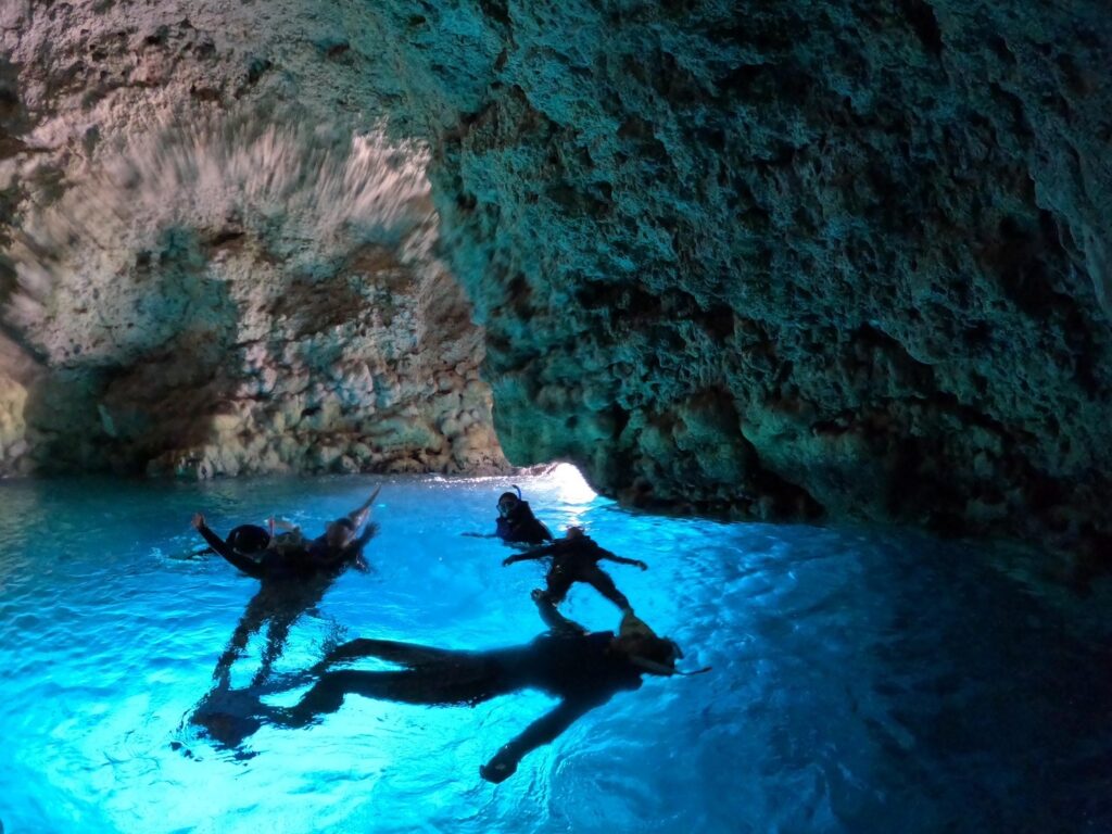 青の洞窟では貸し切り状態!!