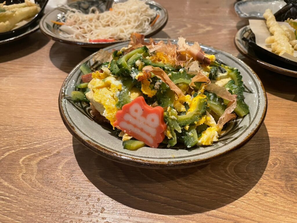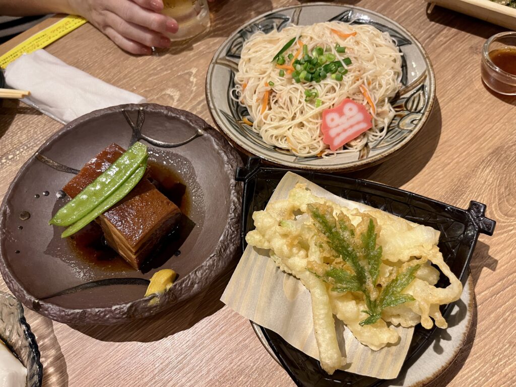 ラフテーにソーメンちゃんぷる、島らっきょうの天ぷら